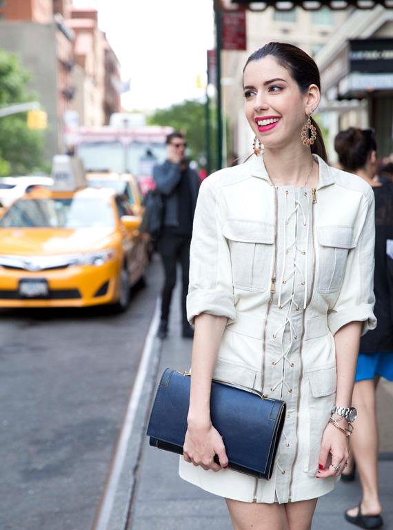 Curiosa pra saber o que vocês vão achar desse look do dia! hehe Ontem tive o desfile da Tommy Hilfiger e fui convidada junto com um time de blogueiras gringas bem legais pra usar uma produção da marca no evento – já,já posto as fotos dos detalhes e do desfile, que foi incrível. A coleção que está atualmente nas lojas daqui é de inverno, aí preferi escolher algo da anterior, mais fresquinha, que está a venda no Brasil nesse momento. Me apaixonei assim que bati o olho nesse vestido! É super diferente, pesado e com uma pegada utilitária que gosto muito! Parece um casaco fechado né? Amei!! Enrolei as mangas e apertei bem a cintura pra deixar o shape mais feminino.